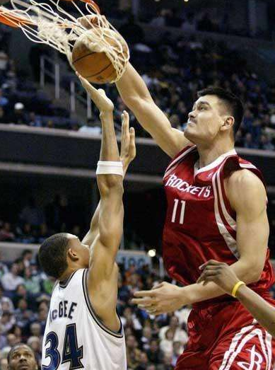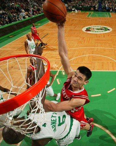 5:新秀时期的姚明确实瘦,力量对抗还不够强。尽管身体上还不算NBA顶级水准,但是姚明球风是足够强硬。在面对华莱士这样的肌肉硬汉防守时,姚明是一个转身过掉对手,恶狠狠在华莱士头上完成扣篮。也许华莱士也没有想到,自己贵为4次最佳防守球员,竟会被菜鸟时期的姚明隔扣。