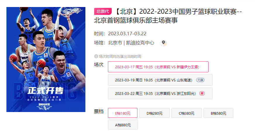 首钢与新疆之战开放5档票价。 网页截图