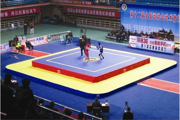 体制内的专业比赛为了突出民族传统体育的特色,以古代“打擂台”为传统文化依据,运动员采用平台的擂台来比赛。 中国古代历史上耳熟能详的比赛,如“杨七郎打擂”和“燕青打擂”等比赛采用的都是采用开放式平台擂台的比武方式。