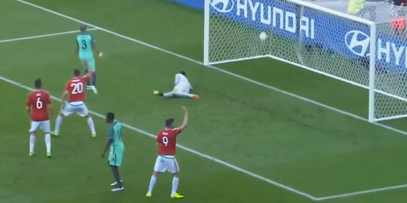 比赛进行到第19分钟,匈牙利队前场发出角球,C罗禁区内头球解围,禁区外匈牙利老将格拉一脚低射,球钻进球门,