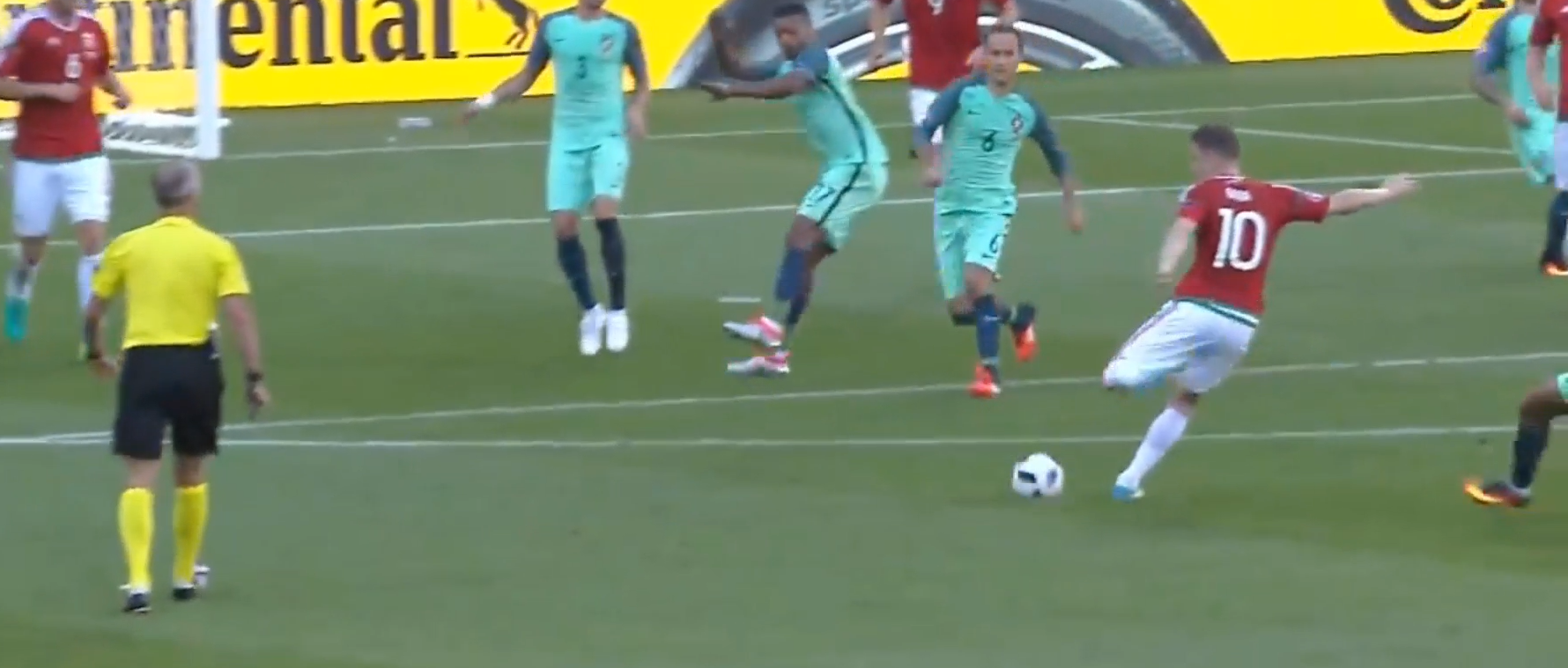 第一场,这场比赛发生在2016年欧洲杯,F组小组赛第三轮,葡萄牙对阵匈牙利,此前的2场小组赛,葡萄牙分别以1:1战平名不见经传的冰岛队(就是那个维京战吼队),第二场则是0:0闷平奥地利,作为被分为第一档球队的葡萄牙, 已经站在悬崖边上, 第三场焦点之战,他们将全力以赴,争取…..小组出线[衰](葡萄牙:我也想争小组第一啊,可是实力不允许啊![抠鼻])。而他们的对手匈牙利队也给葡萄牙制造了不小的麻烦。