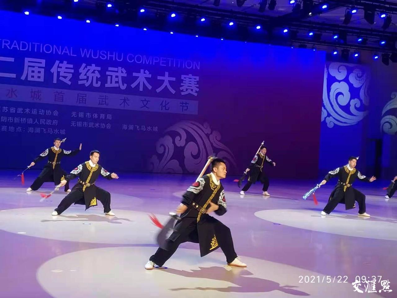 交汇点讯 江苏省第二届传统武术大赛22日上午在江阴市新桥镇海澜飞马水城开幕。来自江苏省13个设区市武术协会、武术之乡以及其它社会组织的19支代表队近600名运动员、教练员参赛。