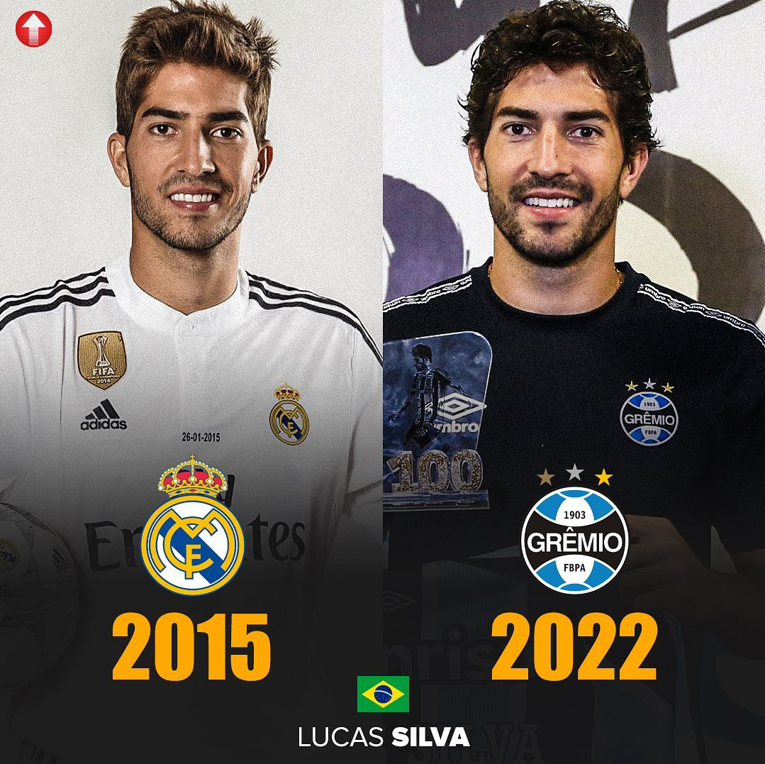 卢卡斯-席尔瓦 2015年皇家马德里 → 2022年格雷米奥曾几何时,卢卡斯-席尔瓦的名字就代表着巴西中场的未来,他曾是巴西国青队的主力、巴甲联赛最佳防守中场,出色的大局观、专注度和传球能力令其得到了皇马的关注,15年,白衣军团以1300万欧元的价格签下了卢卡斯-席尔瓦,然而在群星云集的皇马,席尔瓦没能获得的机会便被租借在外,四处漂泊的他伤病不断,更没有得到好得发展,还曾一度因为心脏疾病而被迫放弃足球。如今,29岁的卢卡斯-席尔瓦正在格雷米奥效力,他只能努力,才能追上曾经那个有无穷潜力的自己