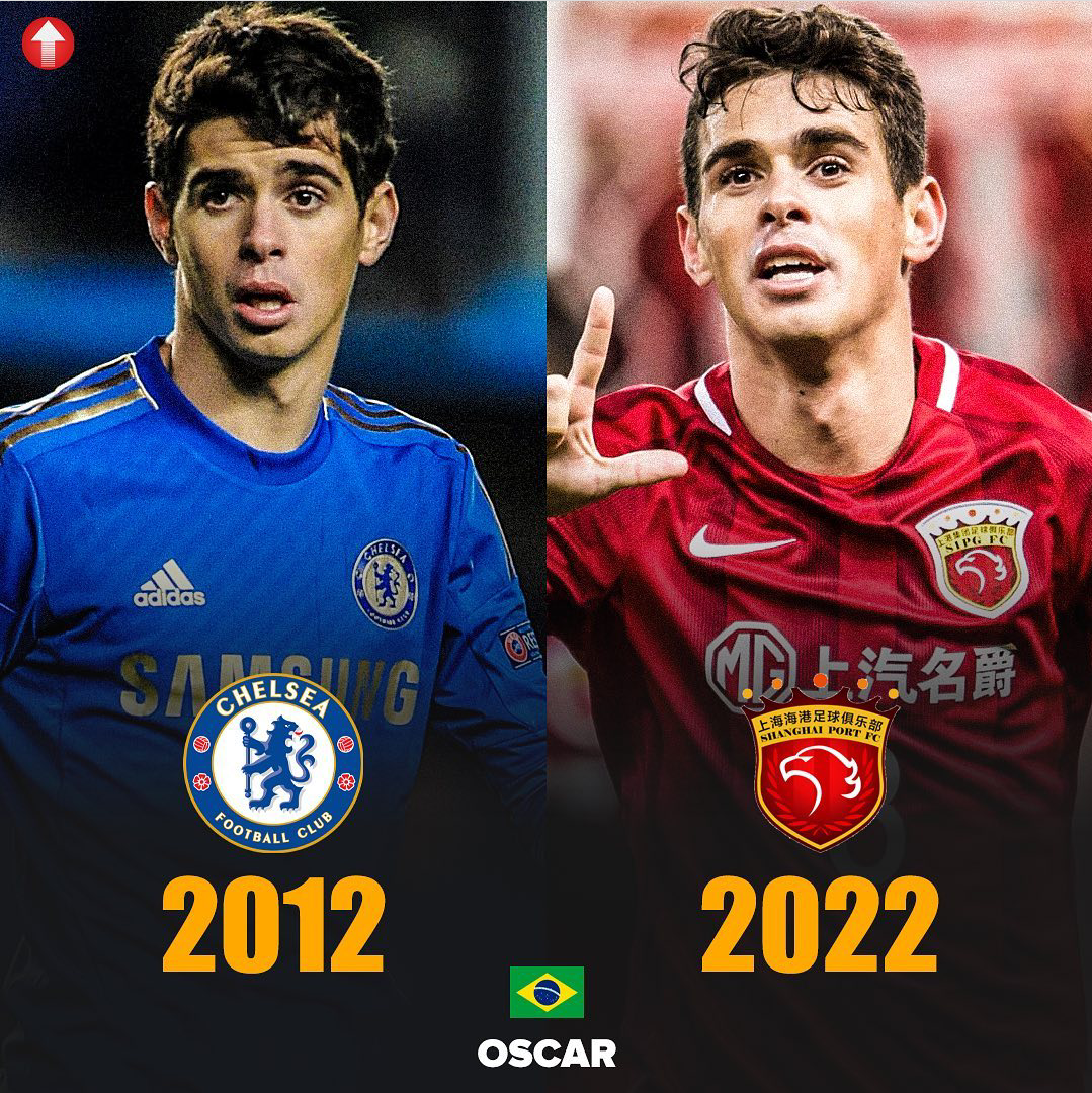 奥斯卡 2012年切尔西 → 2022年上海海港用年少成名的来形容奥斯卡绝对不为过,10年以创巴甲国内转会纪录的600万加盟国际队;11年在U20世青赛决赛中上演了帽子戏法,时至今日都没有第二个人做到过;12年夏天加盟切尔西并在处子赛季出战了惊人的64场比赛;随后的奥运银牌、联合会冠军、欧联杯冠军和英超冠军都是他实力的象征。直至2017年冬窗,由于伤病在切尔西逐渐失去主力位置的奥斯卡选择加盟中超上海上港,虽然这个决定令人意外,但为了赚钱也没有什么可耻之处,只不过之后奥斯卡就退出了顶级球星的行列