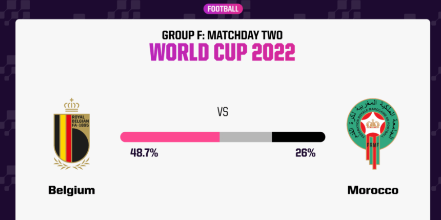 比利时无疑是更被看好的一方,他们取得两连胜的可能性为48.7%,而摩洛哥获胜的可能性为26%。