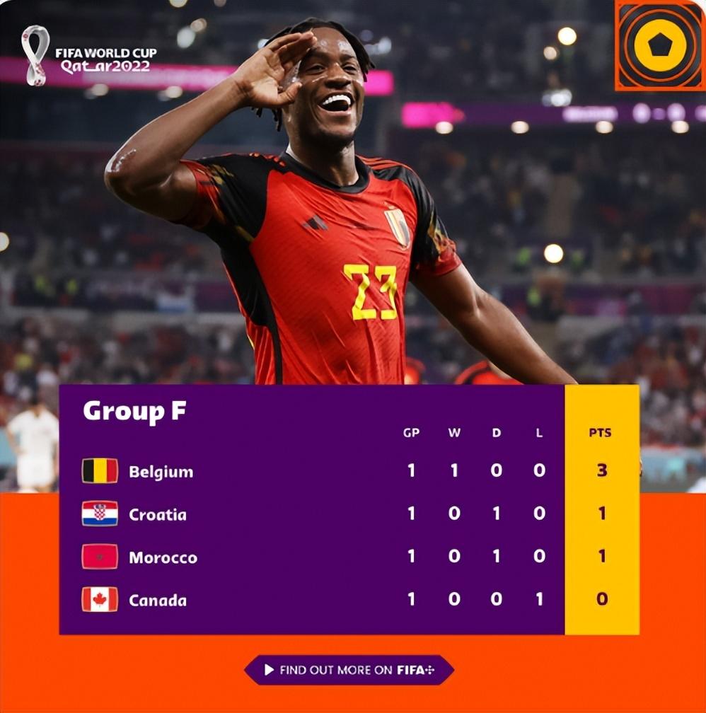 比利时本轮拿下摩洛哥即可提前一轮出线。