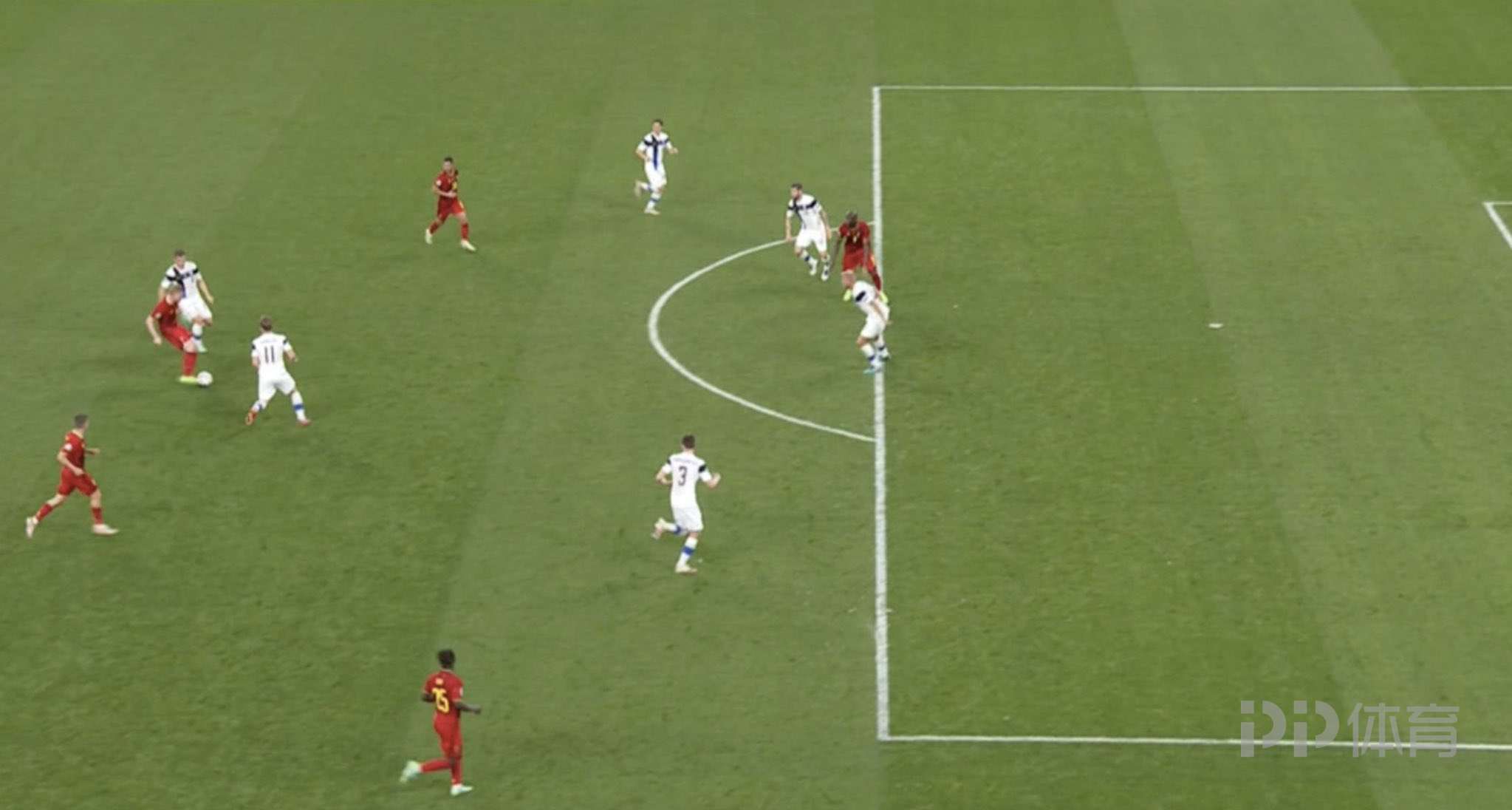 第22分钟,德布劳内禁区外得球后一路杀入禁区横传,球被芬兰后卫解围。↓