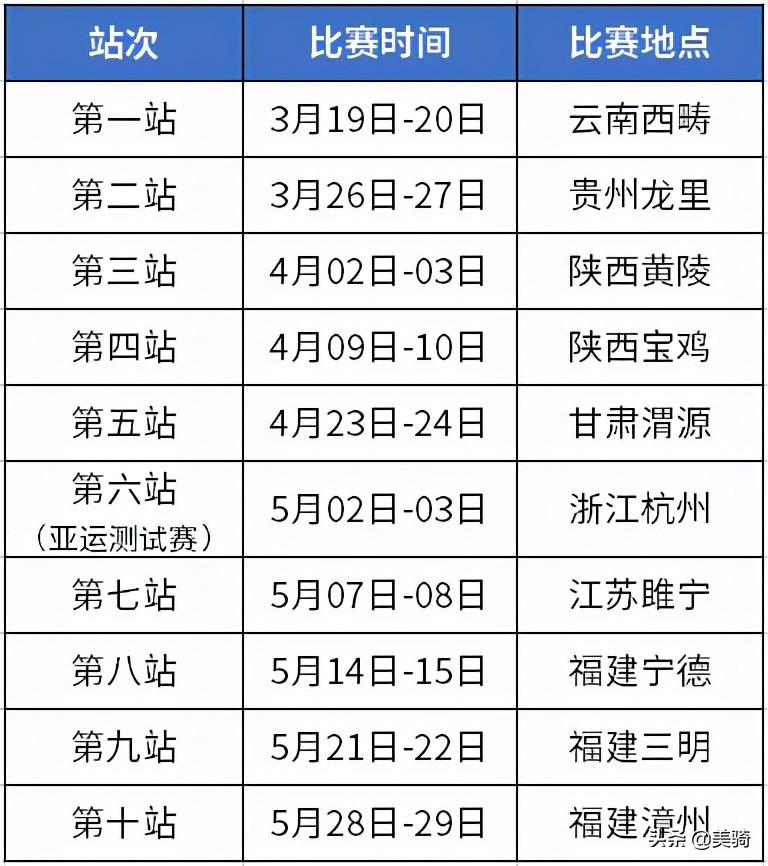 这些比赛一方面是为了2024巴黎奥运会做准备,另一方面是为了2022杭州第19届亚运会做准备,根据公布的内容,2022年上半年中国山地自行车联赛的地区和时间分布如下: