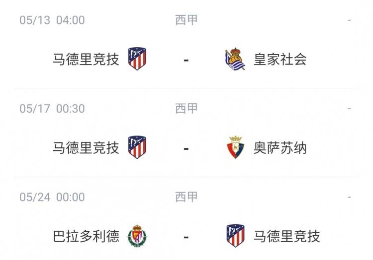 马竞剩余赛程: