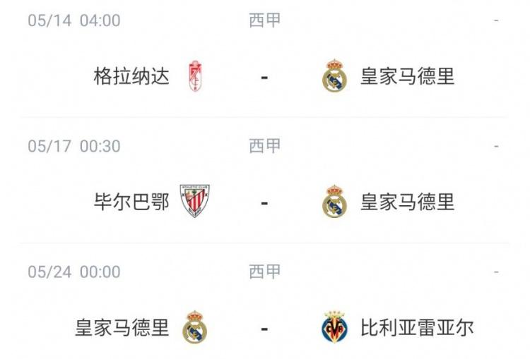 皇马剩余赛程: