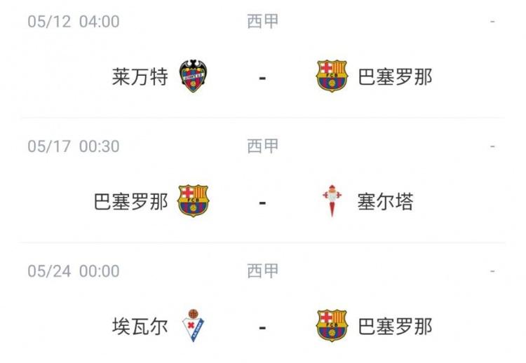 巴萨剩余赛程: