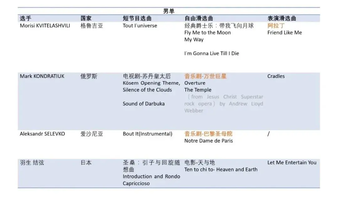 花样滑冰比赛中,除了滑动动作外,表演完成、节目组成和音乐表达也是重要的评判标准。因此运动员的选曲并非任意为之,而是需要与个人风格、动作编排相配合。