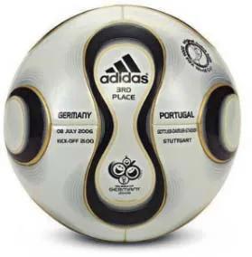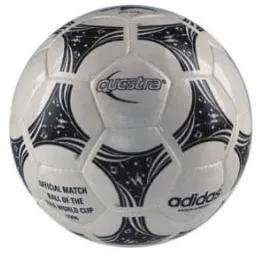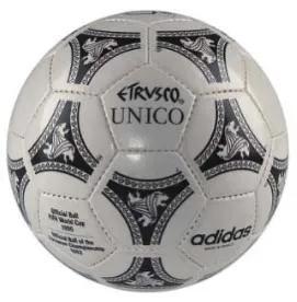 这是第一款比赛专用球,adidas 制造。以12块黑色五边形与20块白色六边形皮革手工缝制而成的黑白相间设计也是为了方便电视转播。