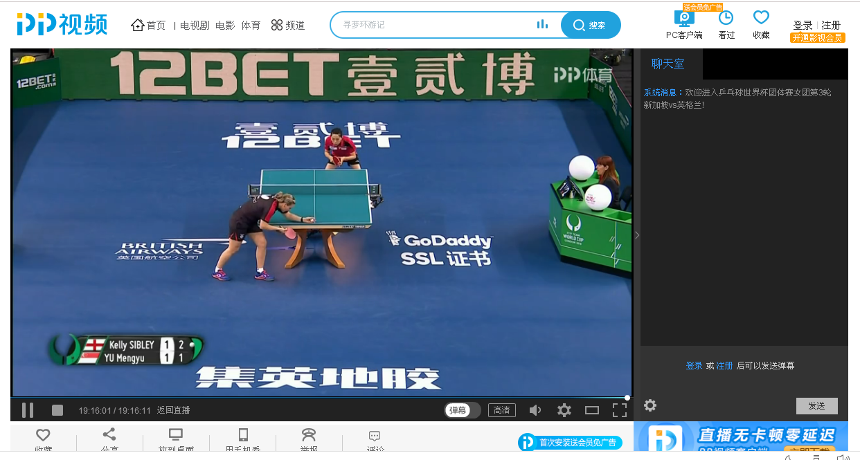 首选中国体育直播网站APP。直播TV国际乒联的赛事视频权益,每到有乒乓赛事时都会进行直播。这次2018年世界杯团体赛乒乓网的湿父郭云鹏就在直播平台进行解说。直播TV这有手机APP,安装后可以在手机上看乒乓球直播。