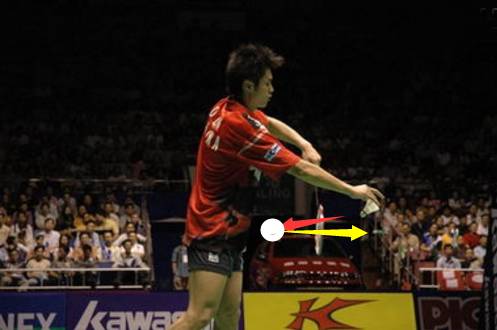 16、球触及球拍后继续向后场飞行。