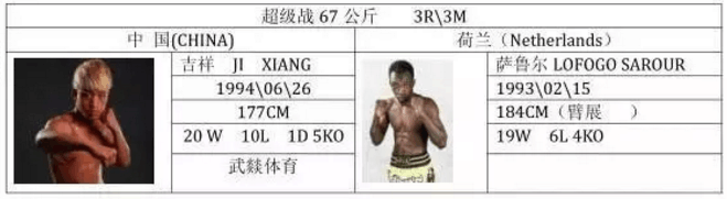 这是一场67KG的超级战,由吉祥迎战荷兰的踢拳高手萨鲁尔,吉祥来自关公故里山西运城,以凶狠勇猛著称,遇强则强,两次KO泰拳王诺彭、KO泰拳王帕桑暖、读秒日本名将T98等。在2017年的比赛里,吉祥三战全胜,两次KO对手,相比之前硬碰硬的打法,如今吉祥比赛风格有了很大的转变,步伐越来越灵活,机动性提升了很高,给我们带了耳目一新的感觉。