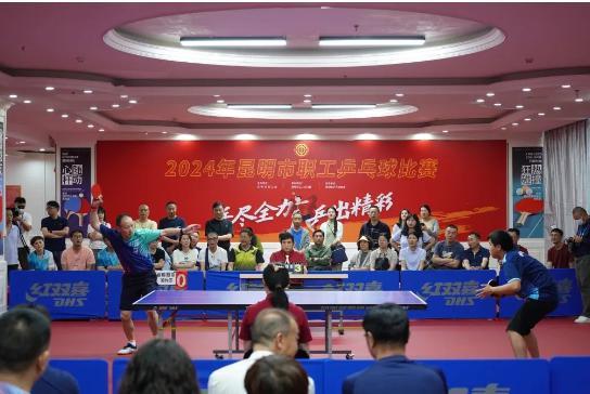 日前,2024年昆明市职工乒乓球比赛决赛在工人文化宫职工乒乓球馆打响。白色小球上下翻飞,加油呐喊此起彼伏,参赛队员们奋勇争先……赛场上掀起阵阵高潮,展现了广大干部职工昂扬向上的精神风貌。
