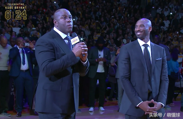 魔术师约翰逊:我们在这是给湖人队史上最优秀的球员来庆祝的,在20个赛季里,他让我们激动过,他让我们抱头说,我们刚看到了什么?我们刚见证了什么?,并且他给我们带来了5个总冠军,3个是在他穿着8号球衣时拿到的,2个是在他穿着24号球衣时拿到的,能有这个男人穿着紫金战袍20个赛季,这是我们的福气,他只在乎优秀,他动力十足,他赢球的意愿非常非常高,今晚我们可以将他两件球衣高高挂在上空。