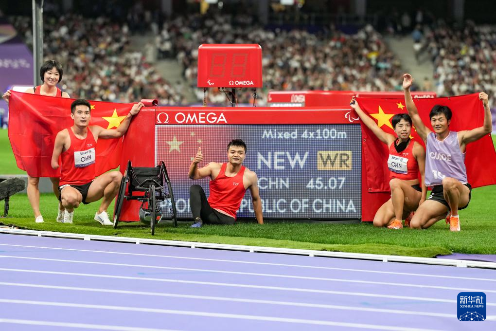 当日,在巴黎残奥会田径项目4X100米混合接力决赛中,由周国华、王浩、文晓燕和胡洋组成的中国队以45秒07的成绩夺冠,并打破该项目世界纪录。