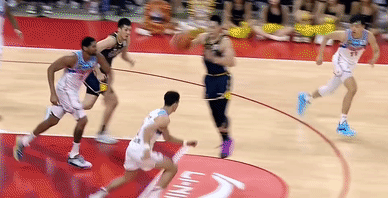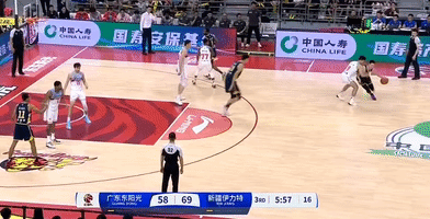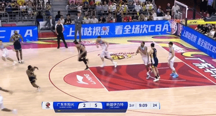 本节打到一半的时间,小分分差依然在5、6分之间。新疆这边,依靠西尔扎提连续的快下,不断地冲击广东的防线。另一边,贝兹利在努力证明自己的能力,超远三分命中。