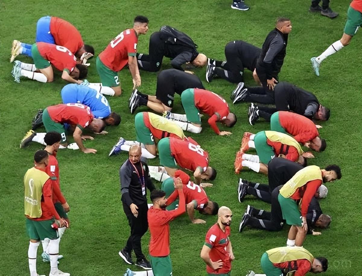 球员们围成一圈 , 跪在地上双手指天