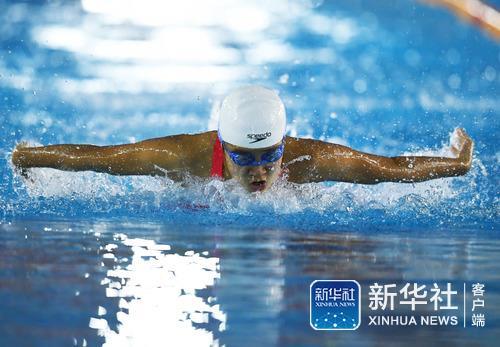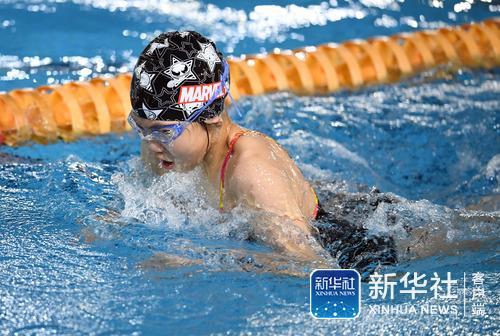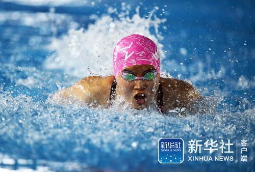↑12月12日,北京市第四中学选手李紫欣在女子初中组50米蝶泳决赛中。