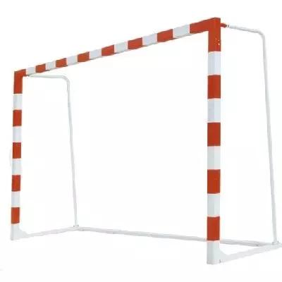 球门位于各自球门线的中央。球门内径高2米,宽3米。球门应用同样的木质、轻金属或合成材料制成。球门横梁和立柱的截面为8厘米×8厘米。球门由对比鲜明的两种颜色(相间为20厘米,通常为黑色和白色、蓝色和白色或红色和白色)漆成,必须牢固地置于地面。球门立柱的后沿应与球门线的外沿齐平。球门内应缚挂一张网,使掷入球门的球不会立即弹回。在球门后1.5米处,应挂一张宽9~14米,高5米的垂直挡网。