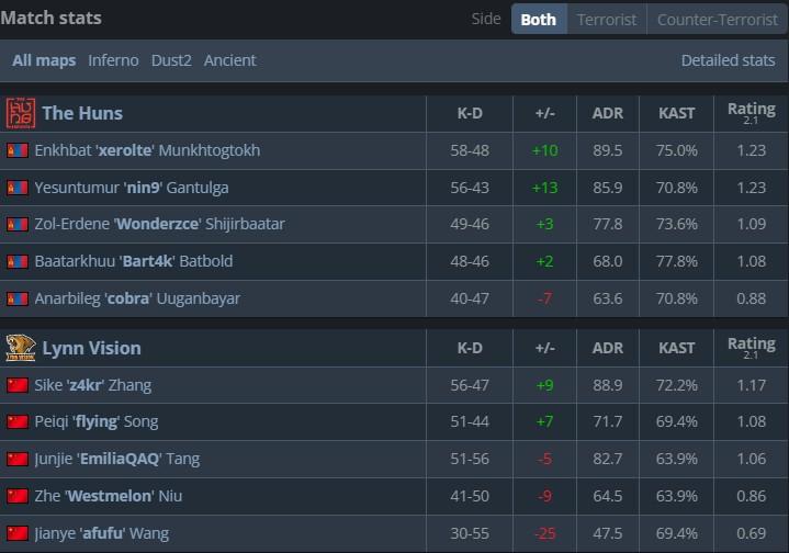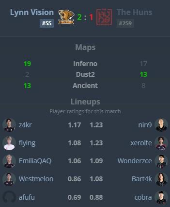 在败者组半决赛中,LVG 2-1艰难击败HLTV排名第259的队伍The Huns(蒙古),晋级线下四强。