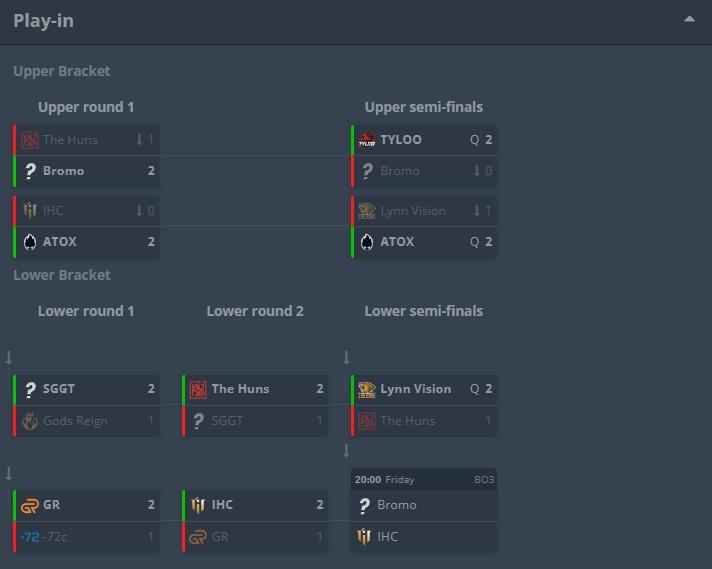 在败者组前两轮比赛中,Gods Reign(印度)、-72c(俄罗斯)、SGGT(俄罗斯)、GR(俄罗斯)先后被淘汰。