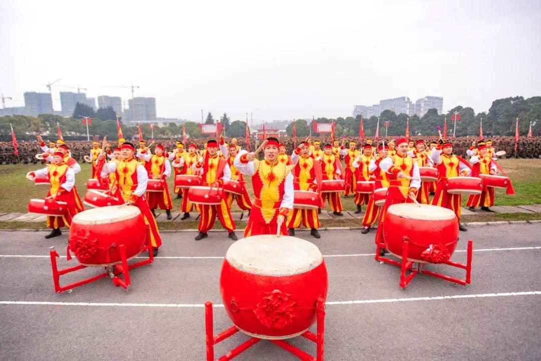 “敲锣鼓、壮军威”。只见支队数十名“威风锣鼓队”成员枕戈待旦、合力齐奏,锣鼓声震耳欲聋,迅速将官兵带入浓厚的节日氛围当中。