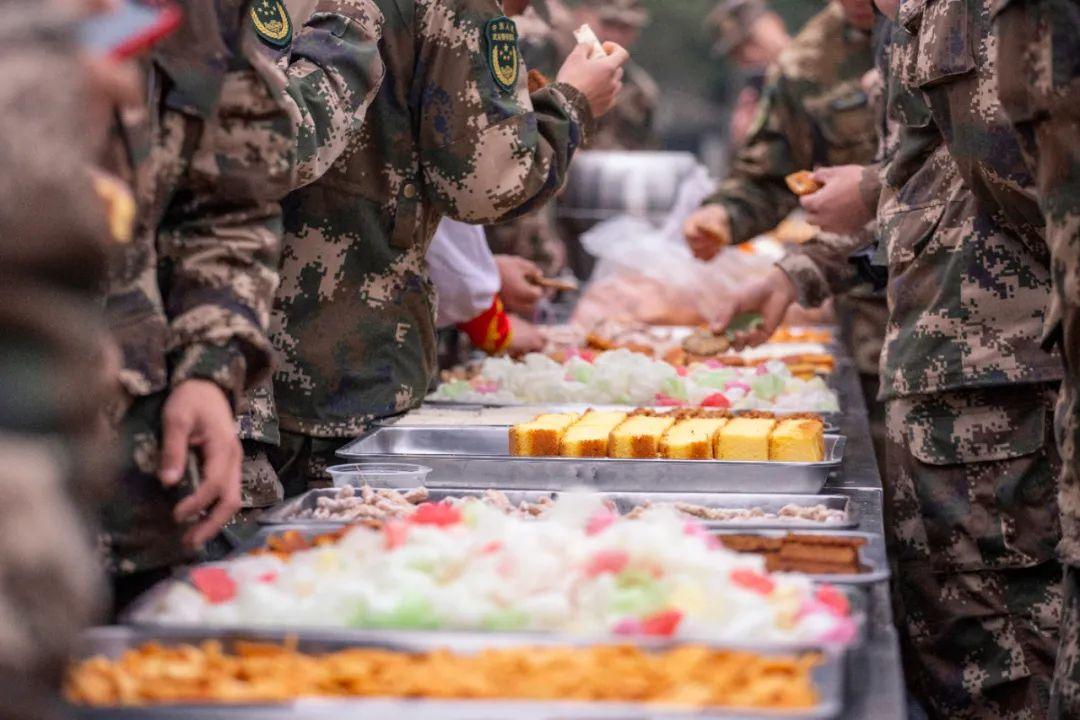 “品佳肴、展笑颜”。军营新春美食街刚一开业,就被围的水泄不通,各类食品全场免费,让大家在游玩之余还能美餐一顿,深受官兵喜爱。