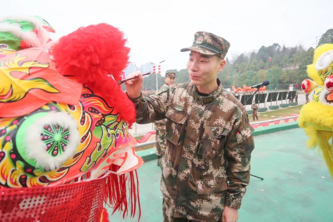 “迎新春、贺大年”。活动开始前,支队首长致了热情洋溢的新年贺词,向全体官兵以及家属送上新年美好祝福,并为狮子点睛,宣布“喜迎新年、牛气冲天”新春游园活动开始。