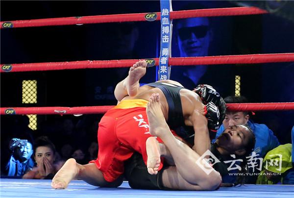 据了解,CKF是以“中国功夫”命名的原创搏击国际赛事,以中国武术踢、打、摔、拿的全面技法为搏击竞技内容。选手可使用拳击、掌击、腿击、肘击、摔技和擒拿等技术动作。以KO(击昏击倒)和TKO(优势胜利)为主要获胜标淮。本次昆明赛区的比赛共有来自中外60多名职业选手参加,共有三场CKF金腰带赛:CKF洲际金腰带保卫战、CKF亚洲国际金腰带争夺战及CKF国际女子金腰带争夺战。