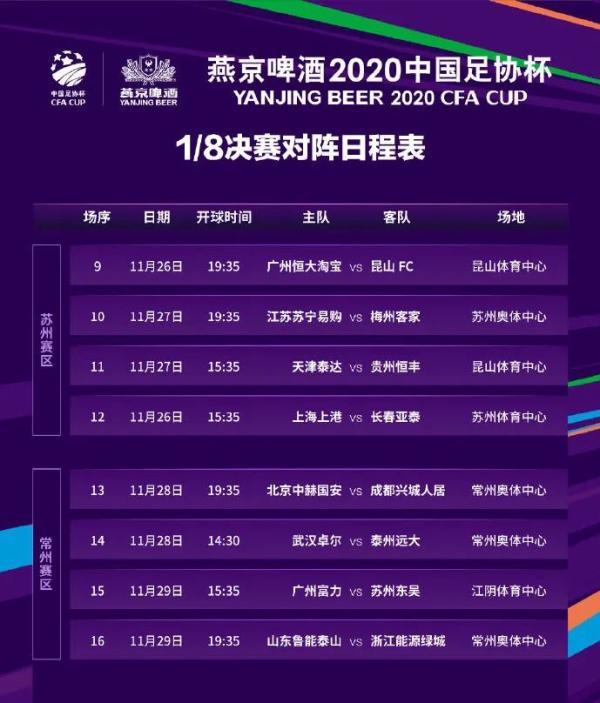 1/8决赛的其他对决可能会产生多场冷门,恒大将对阵昆山FC,苏宁对阵梅州客家,上港对阵亚泰,国安对阵成都兴城,3支亚冠球队都是二队出战,而苏宁则是全华班,中甲球队掀翻中超球队很可能会多次上演。