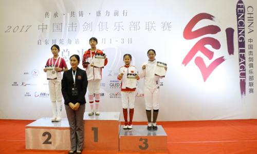 王丽阳站在冠军领奖台上。中国击剑俱乐部联赛 供图