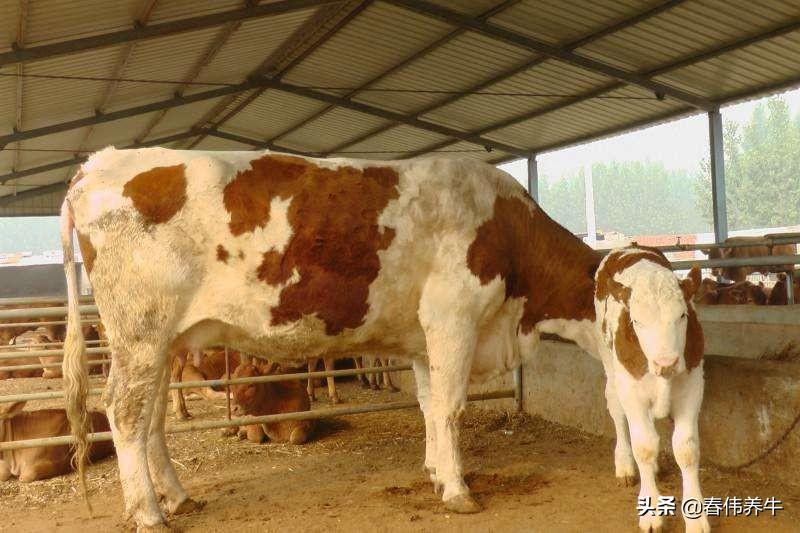 母牛的日粮应包括精料、干玉米秸秆、青黄贮玉米秸、青绿饲料等。根据母牛的营养需要,生产日期日粮中的营养依次为粗纤维、能量、粗蛋白、常量元素、微量元素和维生素,要保证母牛的营养供给。