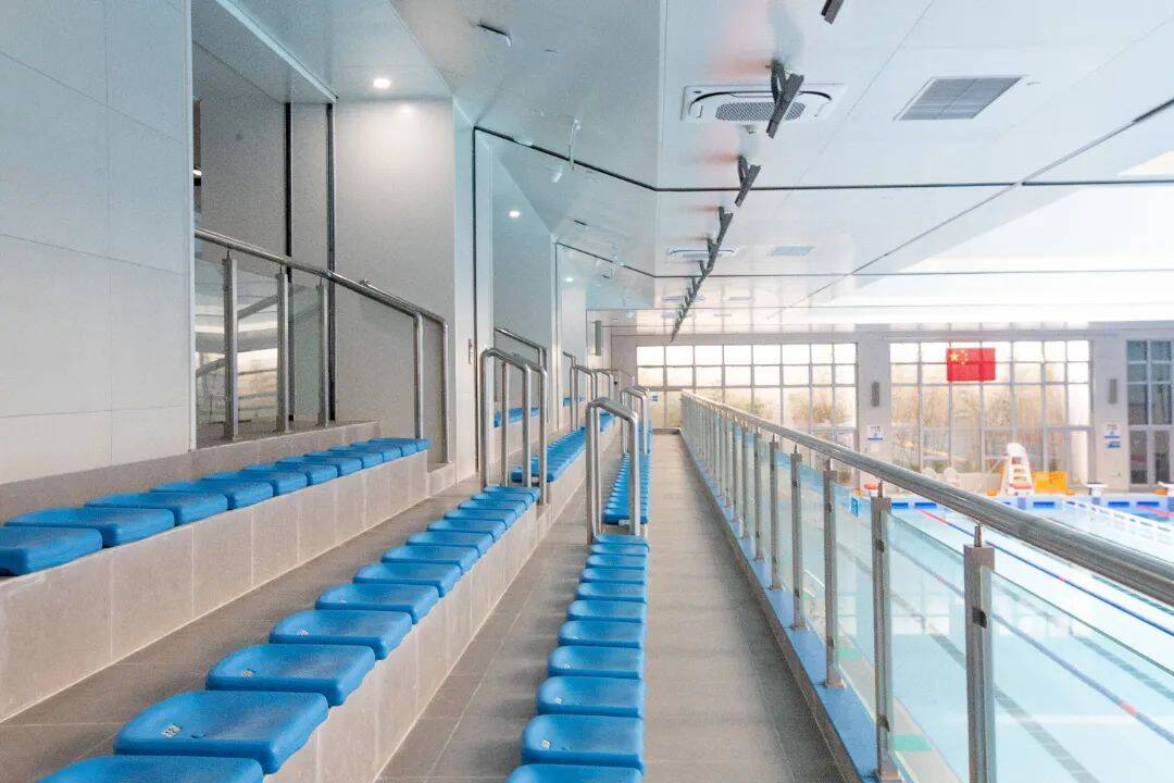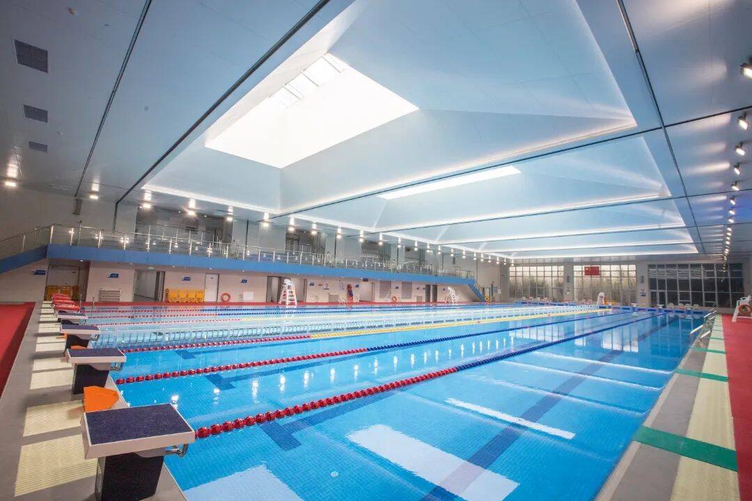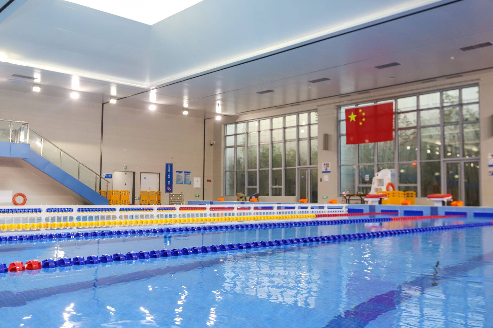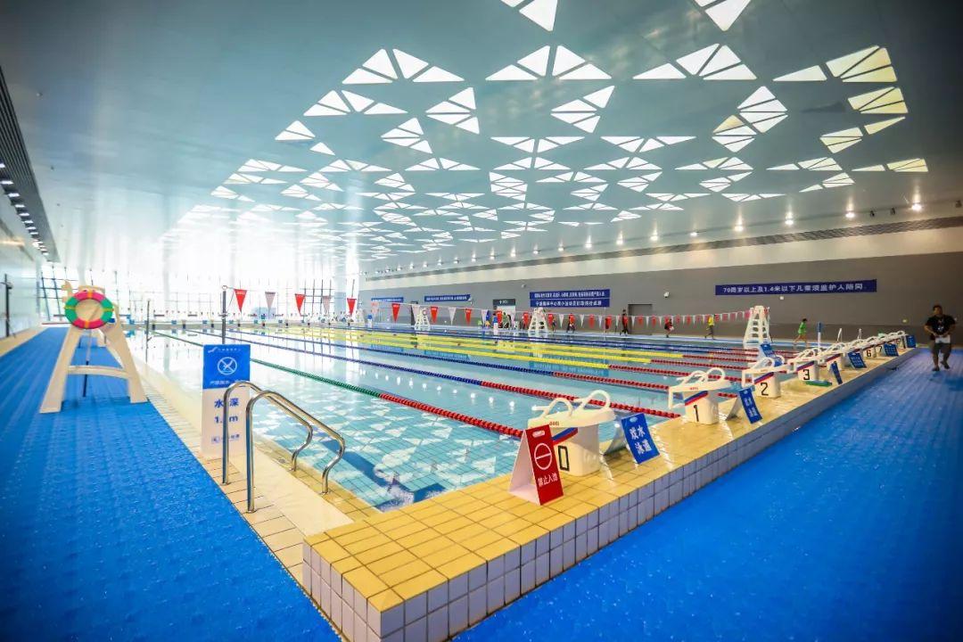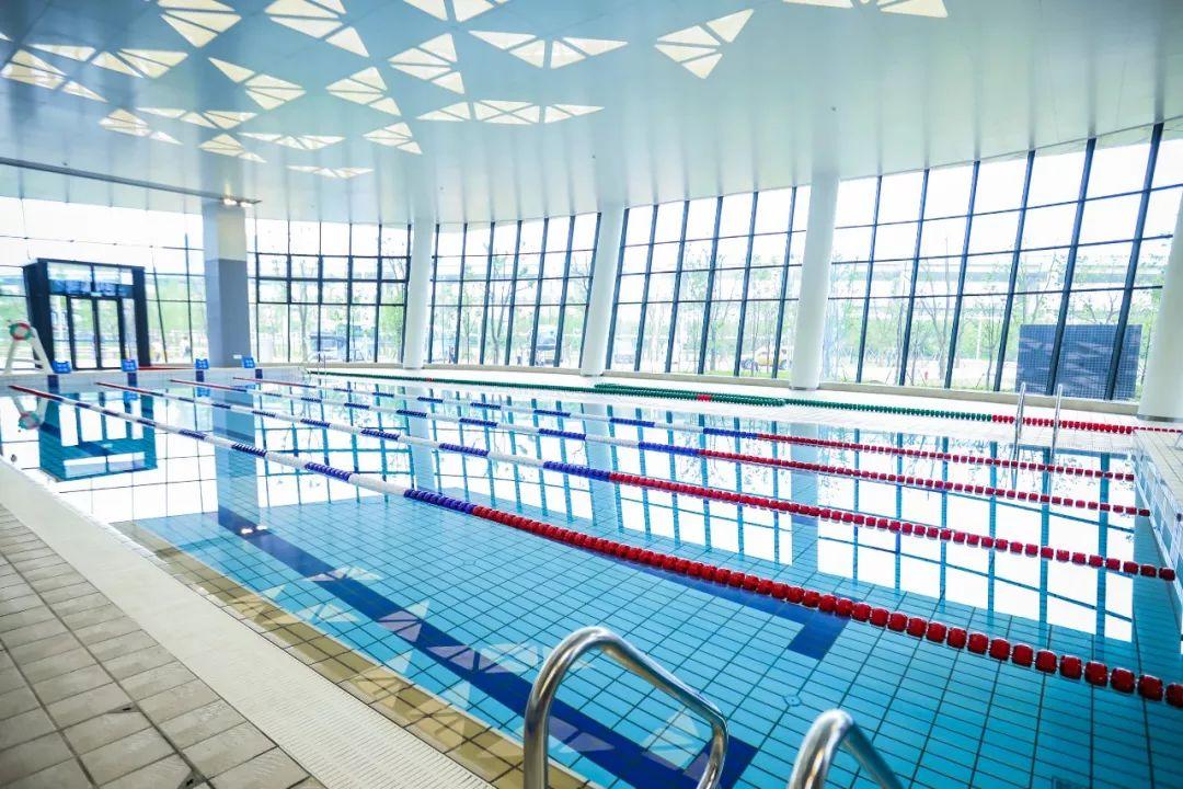 这座面向市民开放的泳池,配备了一座50米标准泳池和儿童戏水池。标准泳池水深在1.35m—1.8m,有10个泳道,而旁边的儿童戏水池水深1m—1.35m,最多能同时容纳100个小朋友(为了安全,1米4以下的小朋友需在监护人陪同下入池)。