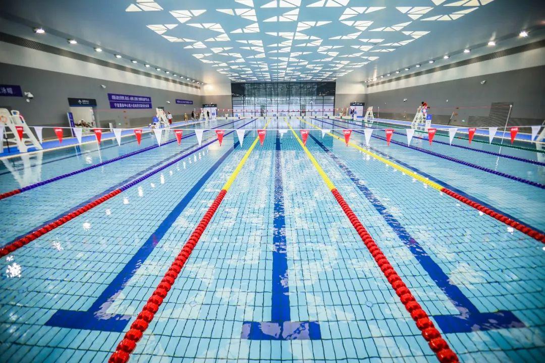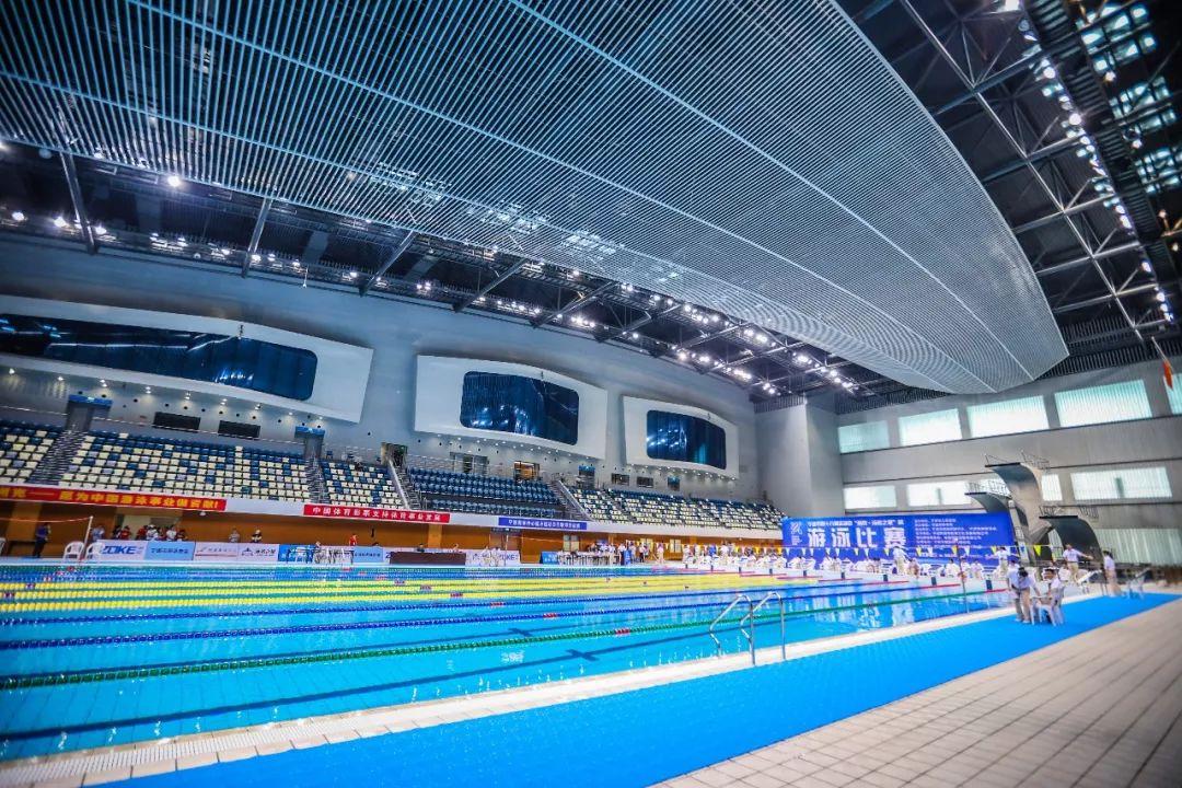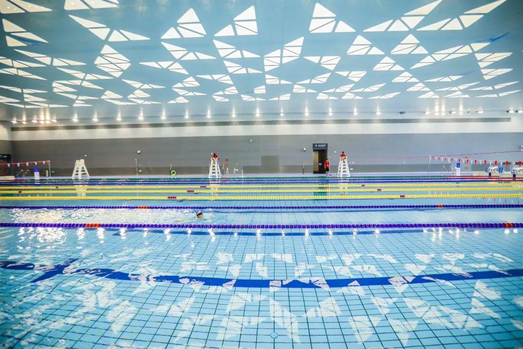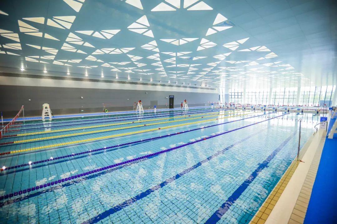 游泳馆整体建筑面积近36000平方米,是按国际级游泳及跳水赛事标准设计的专业比赛场馆。馆内配有两座50米标准泳池,一座标准跳水池,一座25米短池,能够满足举办国际游泳单项赛事需求。