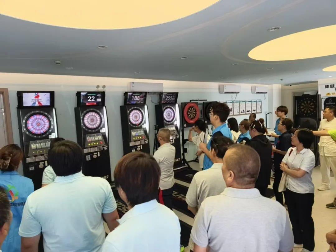 比赛在吴淞街道智慧健康活动中心举行。各方运动员来到赛场同场竞技,享受飞镖运动带来的健康和欢乐。