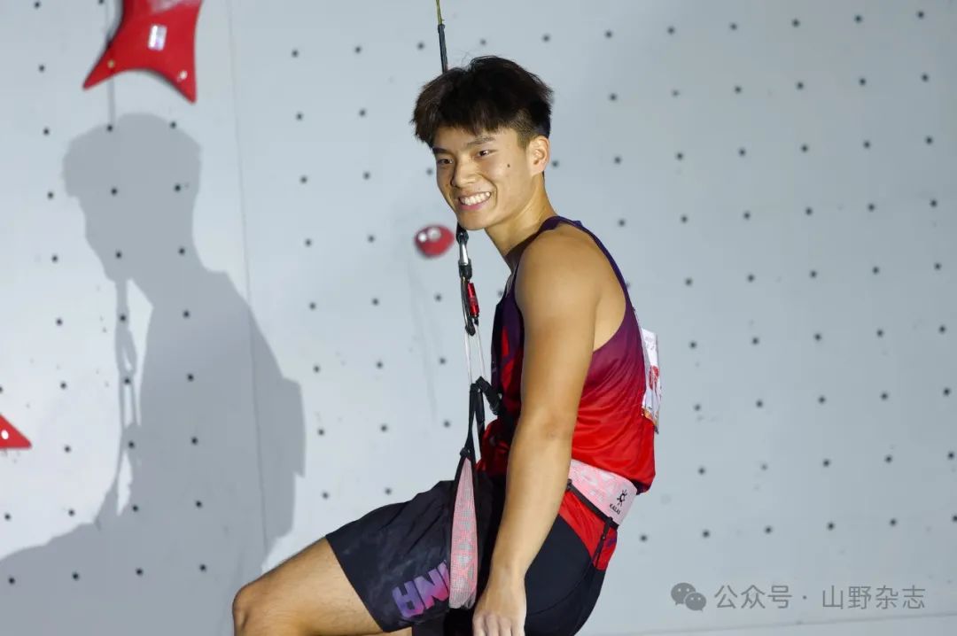 女子、男子攀石项目比赛结束后,精彩刺激的速度项目比赛登场,36名(22名男子、14名女子)亚洲速度攀岩运动员在泰山脚下一决高下。