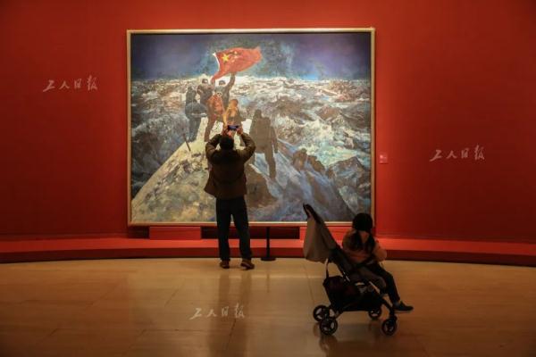 ↑1月11日,北京中国美术馆,观众正在观赏“迎冬奥·美在逐梦”馆藏体育题材美术作品展。此次展览共展出中国画、油画、雕塑、摄影等各类作品160余件。