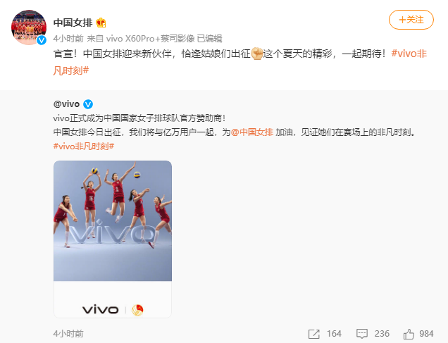 vivo和体育赛事的联系可能是手机厂商中最密切的,2020欧洲杯的热情劲还没过,vivo又高调官宣成为中国国家女子排球队官方赞助商。相信大家都觉得中国女排很亲切,我也有这样的感觉,特别是“女排精神”很振奋人心。