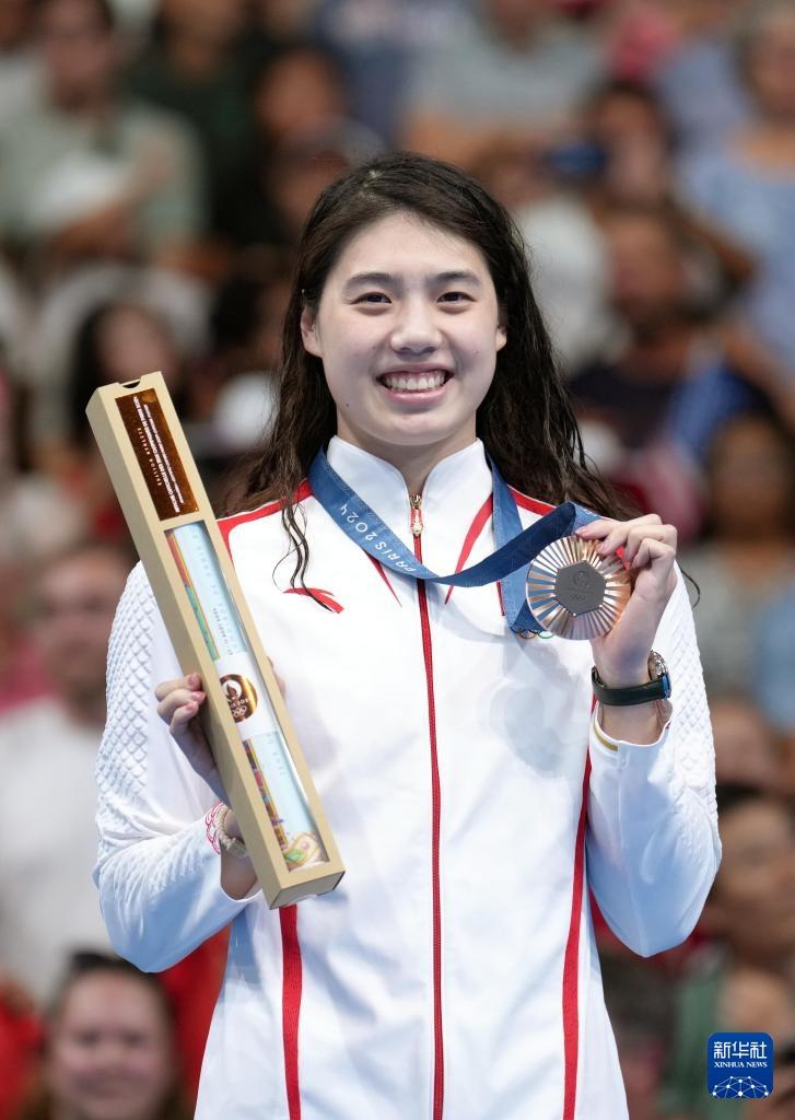 8月1日,中国选手张雨霏在颁奖仪式上。她获得季军。新华社记者 杜宇 摄