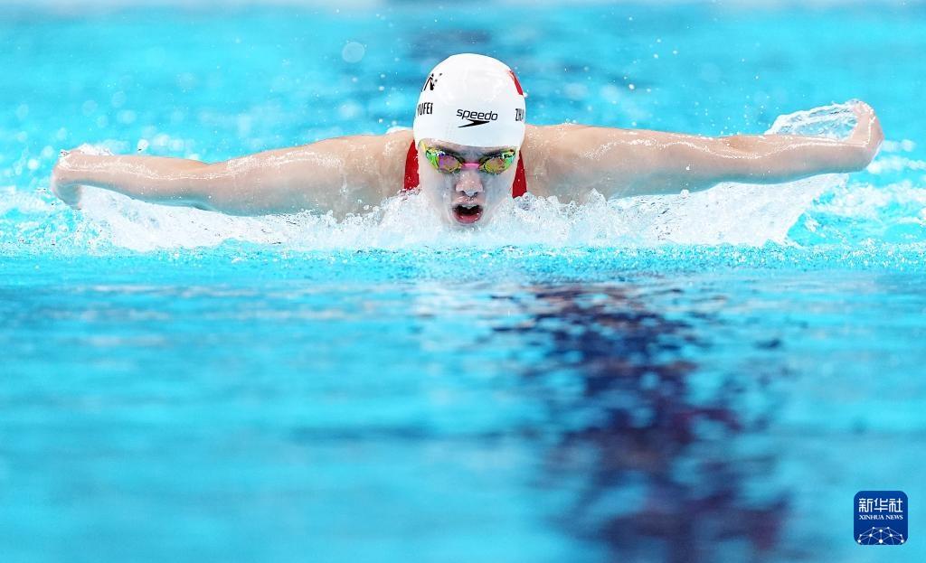 8月1日,中国选手张雨霏在比赛中。她获得季军。新华社记者 杜宇 摄