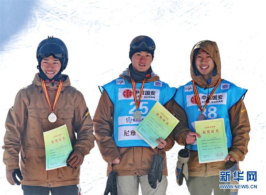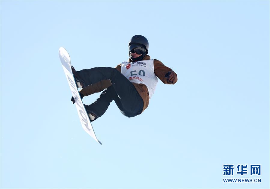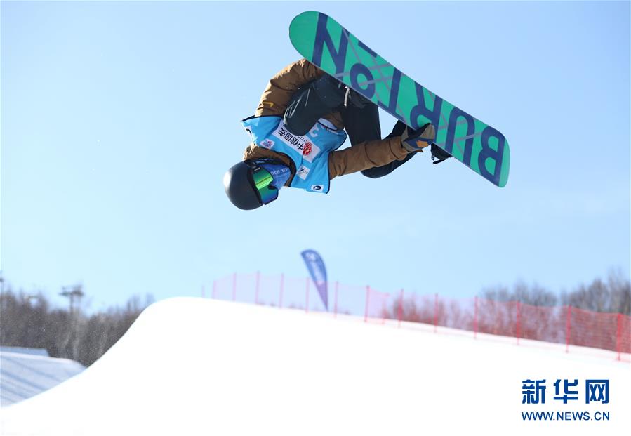↑12月13日,黑龙江省雪上训练中心的选手李坚在男子个人技术难度规定动作比赛中。最终他以84.67分的成绩夺得冠军。新华社记者杨世尧摄