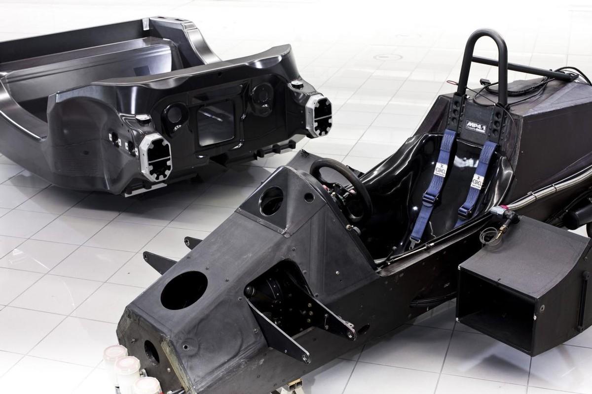 一般来说,赛车的底盘采用硬壳式设计,法语术语为Monocoque ,翻译过来就是“单壳”,意思是汽车的车身由单一的结构蒙皮构成。这种单一结构是碰撞中的主要力吸收器,对于高端的赛车来说,单体壳底盘均由轻量化的碳纤维制成,保证强度的同时降低了整车的重量,这种设计从上世纪90年代引入量产车重,例如迈凯伦和兰博基尼等跑车就采用了碳纤维单体壳底盘。