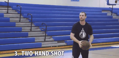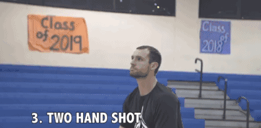 这是很多球友学习篮球初期养成的坏习惯,由于外线射程不足,所以会采取这种双手投石,或是双手推球的投篮动作,这样并不利于掌握发力方向,力量涨了,准星却降了。