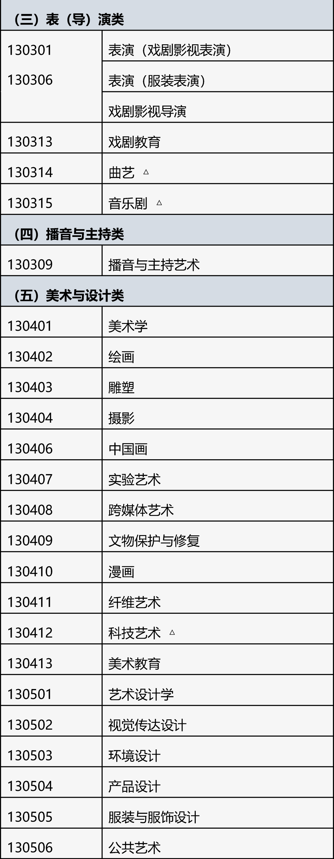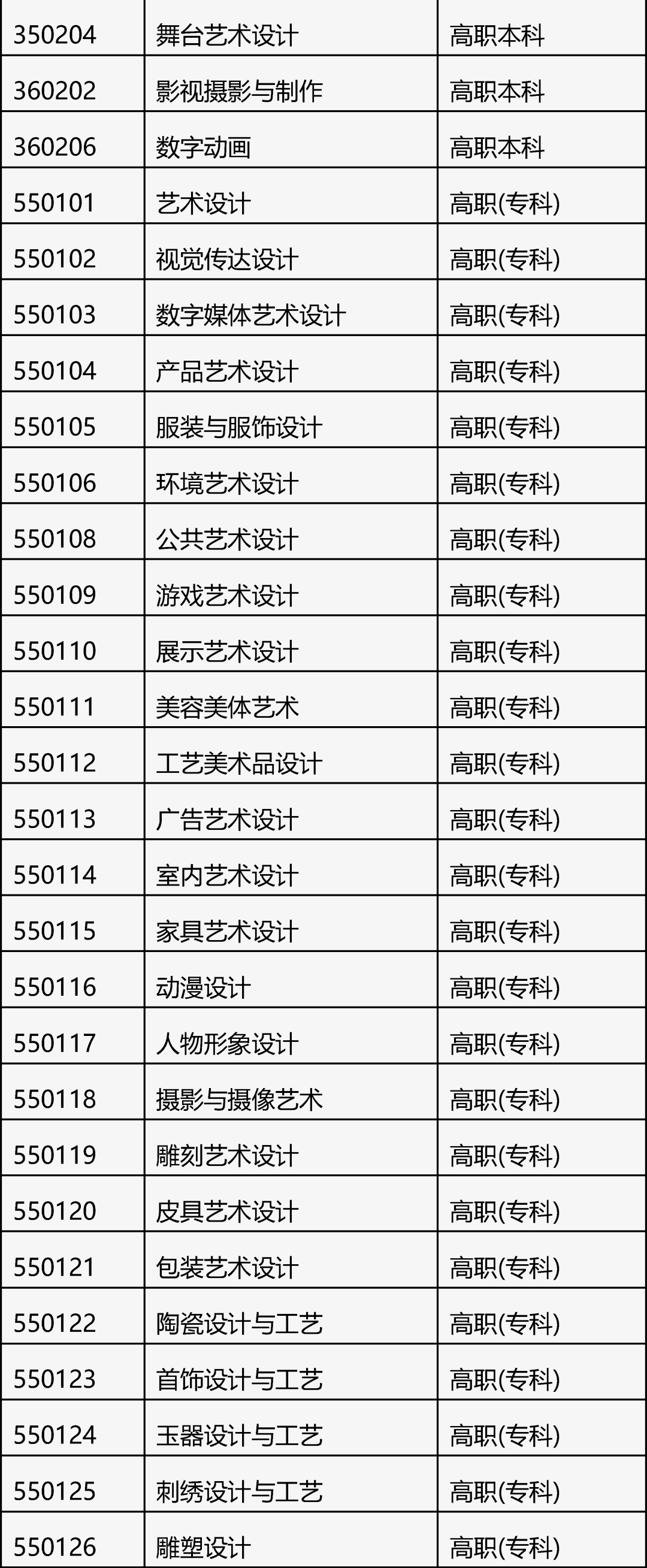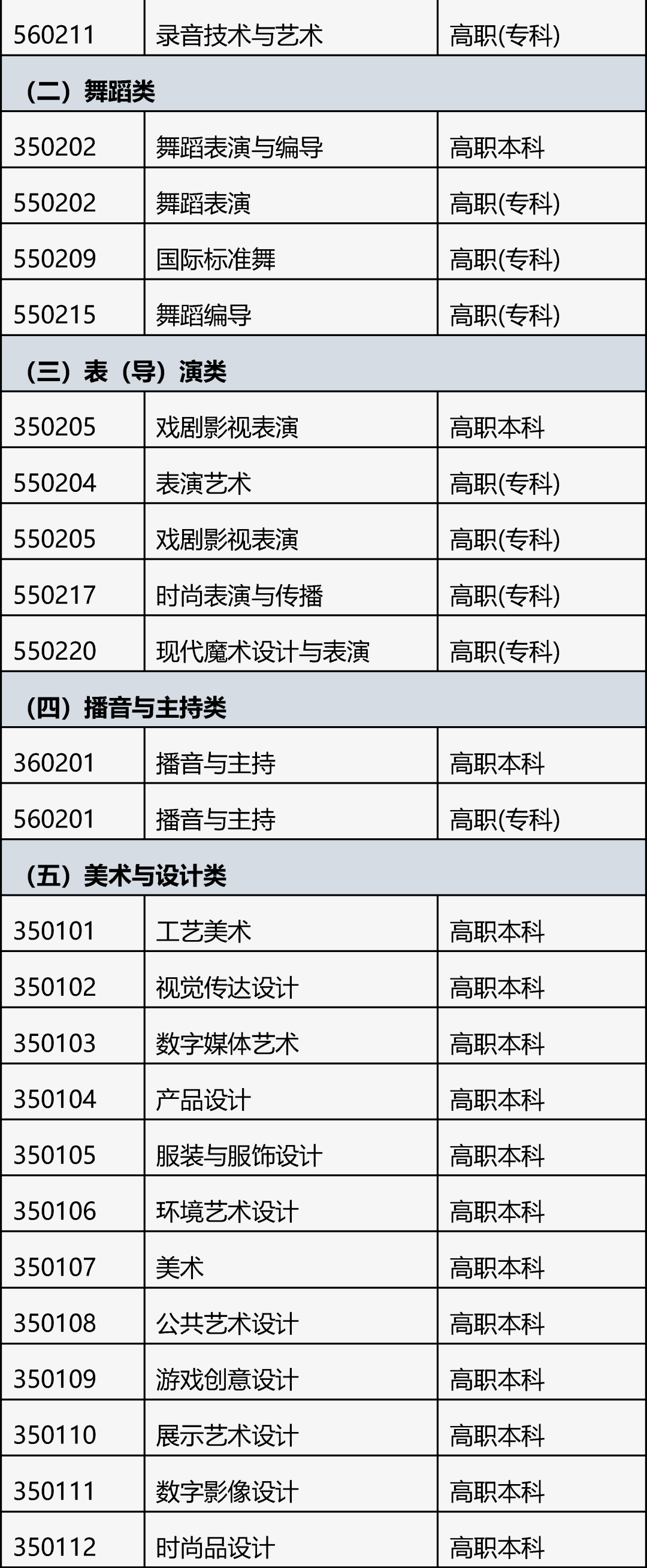 具体详见教育部《普通高等学校艺术类考试招生本科专业目录》和《北京市高等职业教育艺术类考试招生本科和专科专业目录》。