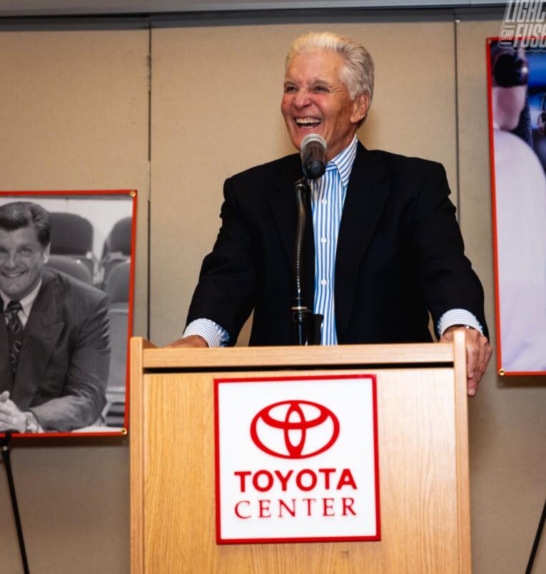 火箭主场对阵独行侠,今天火箭为解说员比尔-沃雷尔举办了特别的致敬活动。