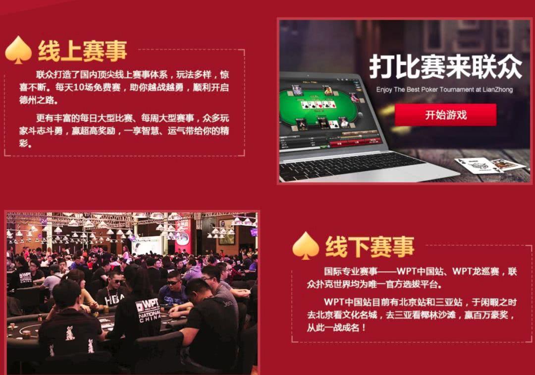 此次涉赌的“德州扑克”,是联众于2010年前后推出的一款游戏,但这并非一款简单的线上游戏,联众针对这款平台棋牌游戏还举行了多场线下赛事。2011年,联众签约著名扑克牌职业选手邱芳全作为《德州扑克》的代言人;2012年开始,联众承办了世界扑克巡回赛(WPT)中国站的比赛。